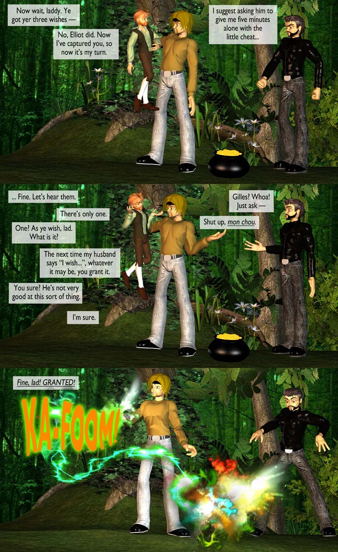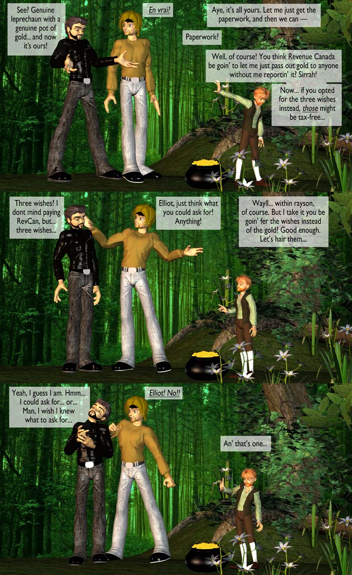 A Little St Paddy’s Day gift March 17, 2017 ~ docandraider Some years back, I did this six part story of Elliot and Gilles’ encounter with a leprechaun. It seems like a good time to reprint that, so… enjoy…