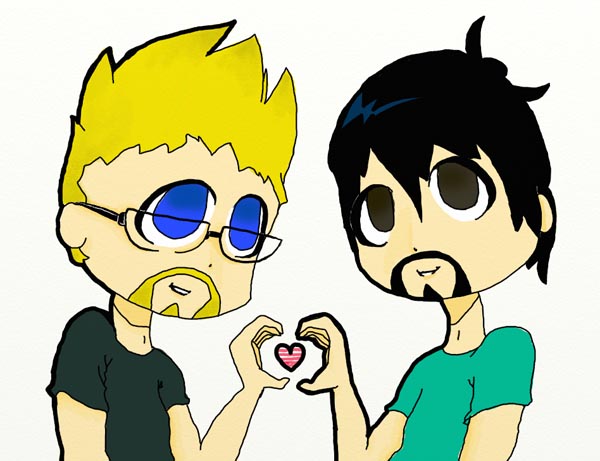 I love getting fan art (hint hint), and this is one of the coolest I’ve received in a long time. Done by an artist in Gatineau, Québec, who goes by the name of “Ape” (You’ll have to ask her mother why.), it’s a really nice piece of manga-style adaptation of the guys. Ape is just getting started as an artist, but she shows incredible promise and skill. Many, many thanks!!!
