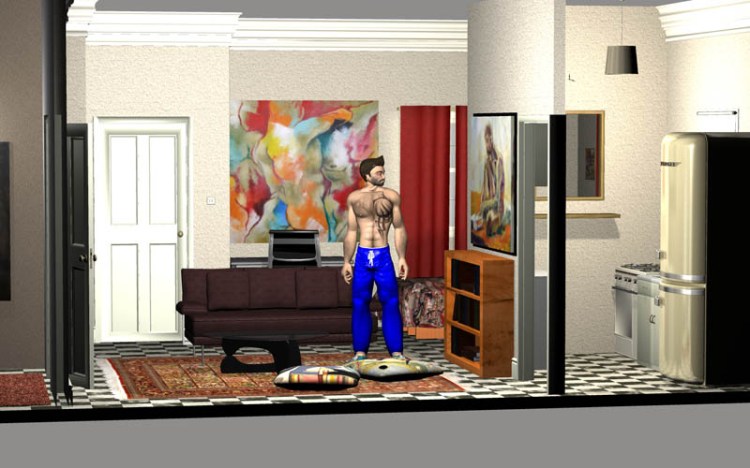 You may have noticed in the past year and a bit that the environments in which the boys all variously live have become a lot more defined and concrete — Doc and Ray’s long, low balcony condo, reflecting Doc’s success as a writer and script doctor; the thruple’s South Beach Deco, with more colour and pattern; Eddie’s elegant (but not too fussy) Scottish penthouse. And now, with this storyline, we’re adding in David’s little studio apartment, which has its own surprises about who this guy is.