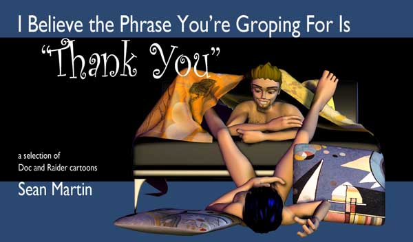The Phrase You’re Groping For draws back the curtain on the boys’ other activities in thirty single-panel cartoons that take you from the bedroom to the shower and a few other places inbetween (heh heh heh).