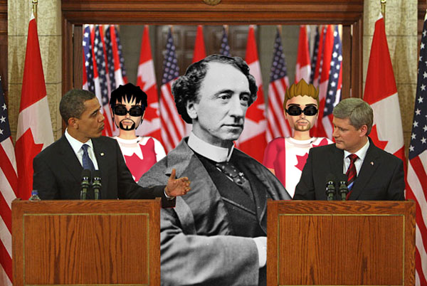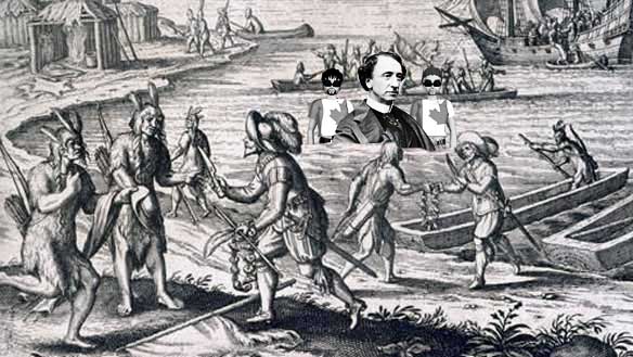 And for those of you who’re not Canadian (and I am so very sorry for you), the images above show: (1) our Prime Minister meeting with some foreign dignitary whose name I forget; (2) Prince William and Princess Kate at the Calgary Stampede; (3) “Voice of Fire” at the National Gallery in Ottawa; (4) the opening of Parliament; and (5) the first contact between English explorer John Cabel and an aboriginal tribe known as Kanadans, somewhere in Newfoundland.