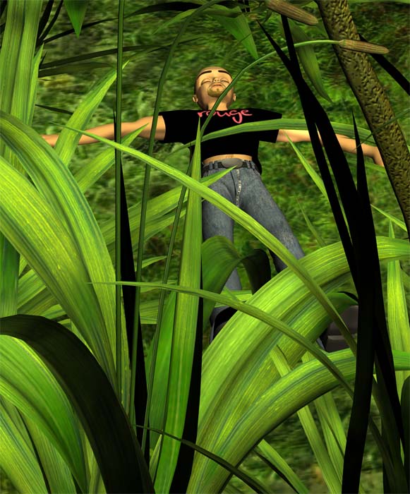 He painfully rose up to one elbow. Nothing seemed to be broken, only slightly bruised. He opened his eyes to see a lush, semi-tropical forest, filled with curious vines and grasses whose size dwarfed any he’d seen before. What the — ?