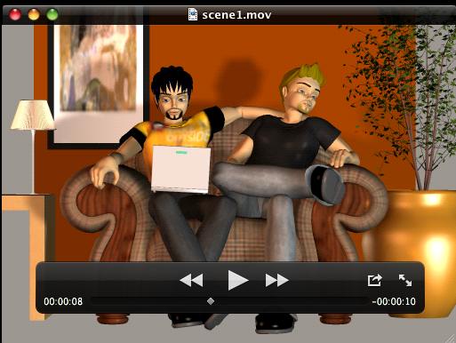 As I mentioned earlier, I’m working on an animation of the boys. Nothing serious, only a couple of minutes in length, but it’s looking like a lot of fun. I thought you folk might like to see a couple of early screen grabs from the beginning of the thing — and remember: what you see may not be exactly as presented. ::grin::