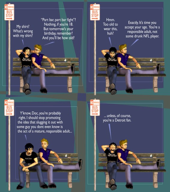 A bit of clean up, actually. Comics done last year that werent added to this blog (because, well, I forgot)… The first addresses the pains of being a Detroit Lions fan last year, a season where the team won exactly none of its games.