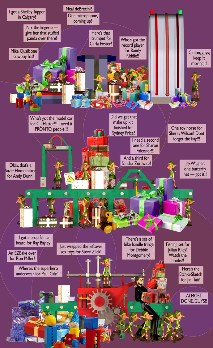 1. Uh-oh, Santa's Elves' database has my last name spelled wrong. That's ok, I'd much rather have whatever sex toy Santa's got marked down for me on his old school rolodex than those coloring books, however well-intended. And I still appreciate the well-intended inclusion, Sean. Sincerely, Steve ZLICK.