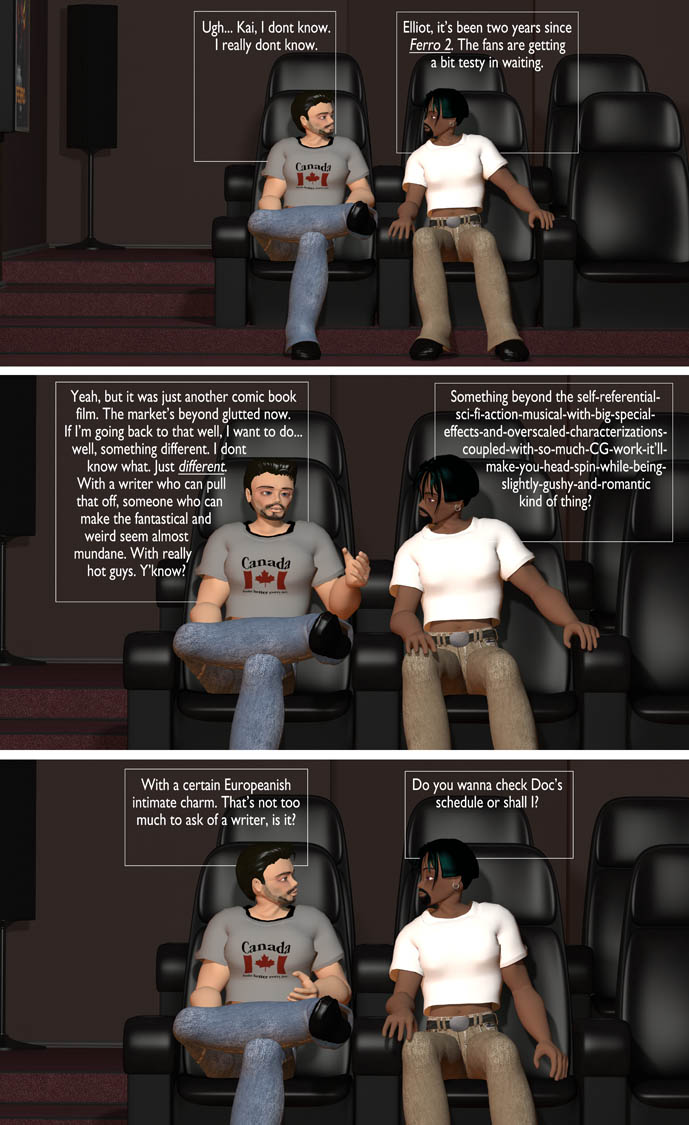 Ferro 3! Prologue (1) July 24, 2018 If you’re just joining us, Ferro is Elliot’s summer blockbuster franchise of SuperHeroes in Space. There’ve been two Ferro movies before now, and this one will complete the trilogy. Maybe. We’ll see. :: snicker :: Related