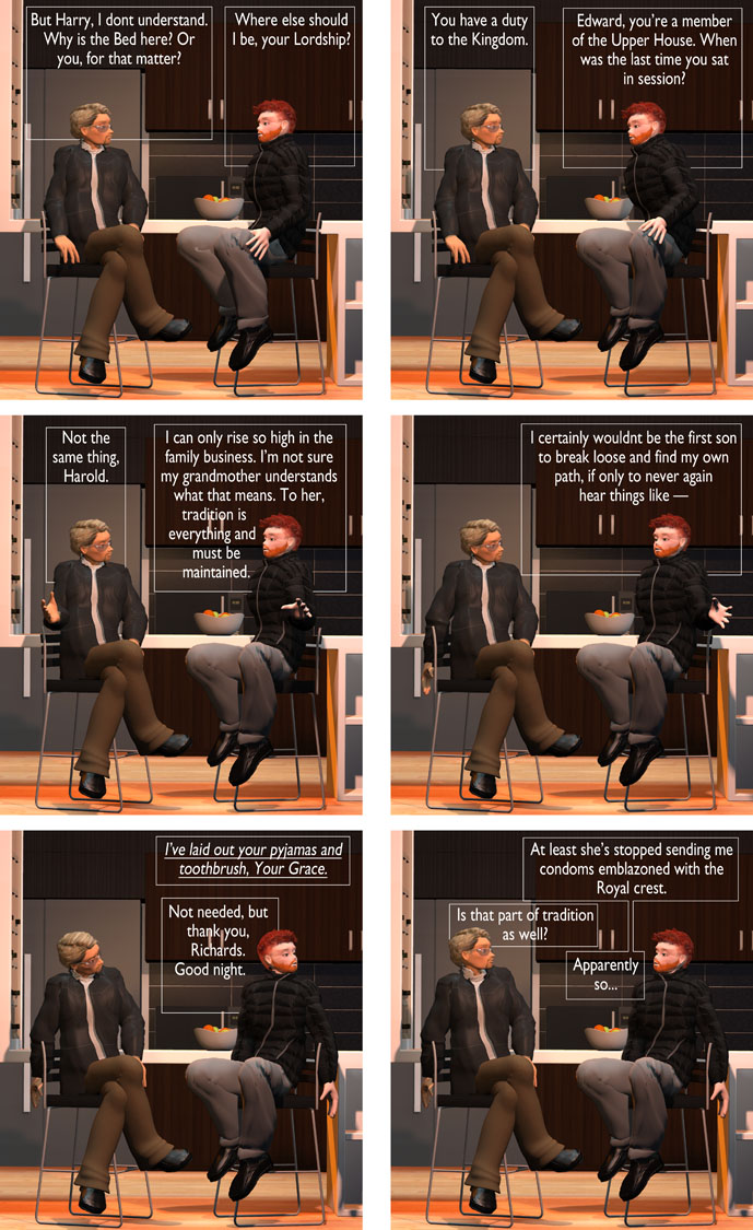 Yes, it’s been a few days since the last episode. A bit of writer’s block, actually: I know where I want this story to go, but sometimes my muse needs a bit of prodding before I can figure it out. Suffice it to say that now we know the path forward… at least I hope we do. 🙂