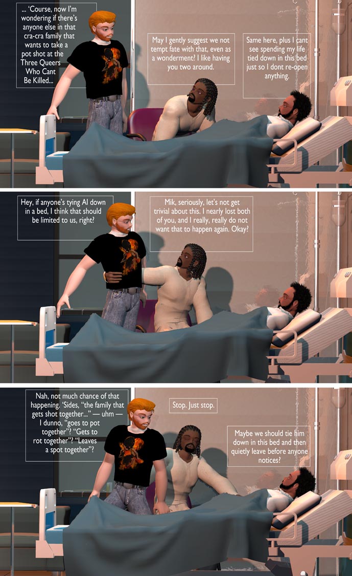 … which leads to: there’s a larger issue here as well, one that precipitated this storyline, the idea that the best way to handle a problem is to just shoot it and hopefully kill it. It’s almost become the default solution to everything in America, one that knows no race, no gender, nothing. Dont like that the wife stepped out on you? Shoot her. Dont like that someone at Waffle House didnt give you correct change? Shoot him. Dont like that someone doesnt share your sense of sexuality or skin colour or religion? Shoot ’em all, and let God sort it out, as the uber-masculine t-shirt of the 70s once proclaimed.