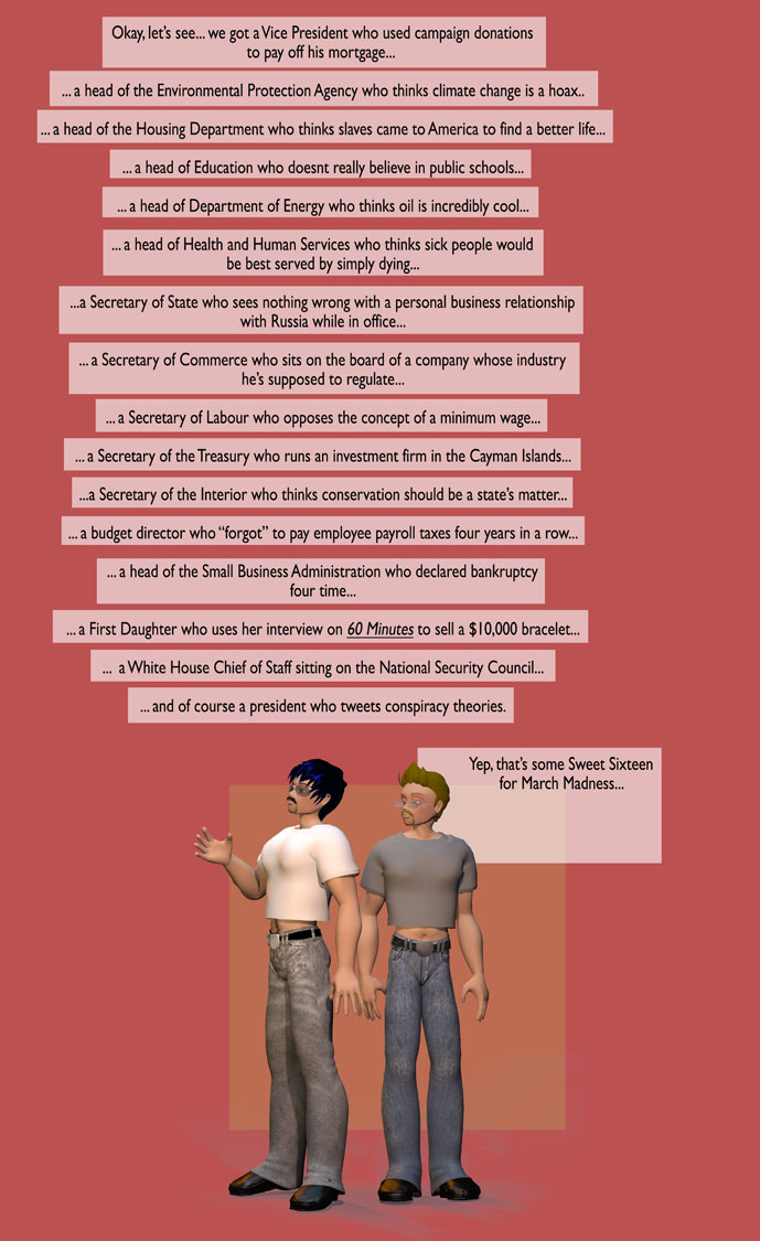 March Madness 2017! March 11, 2017 I told myself I wasnt going to say anything about Cheeto… but with the tradition of March Madness in this strip, I had no choice. My apologies… Related