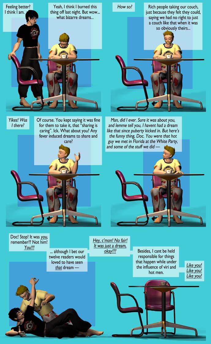 But as we edge nearer and nearer that magic number, something I want to do this coming week is sort of an interview with the guys. You got questions about them? Let’s hear them. Email me at sean at joey-aristophanes dot com, and let’s see how the guys (or any of their friends for that matter) respond to the burning issues YOU want answered…