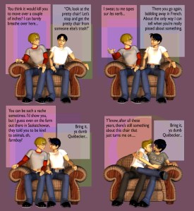 That chair! April 10, 2010 We’ll return to the “evolutions” storyline on Monday. But for now, ever wonder about that cramped little chair of theirs? Related