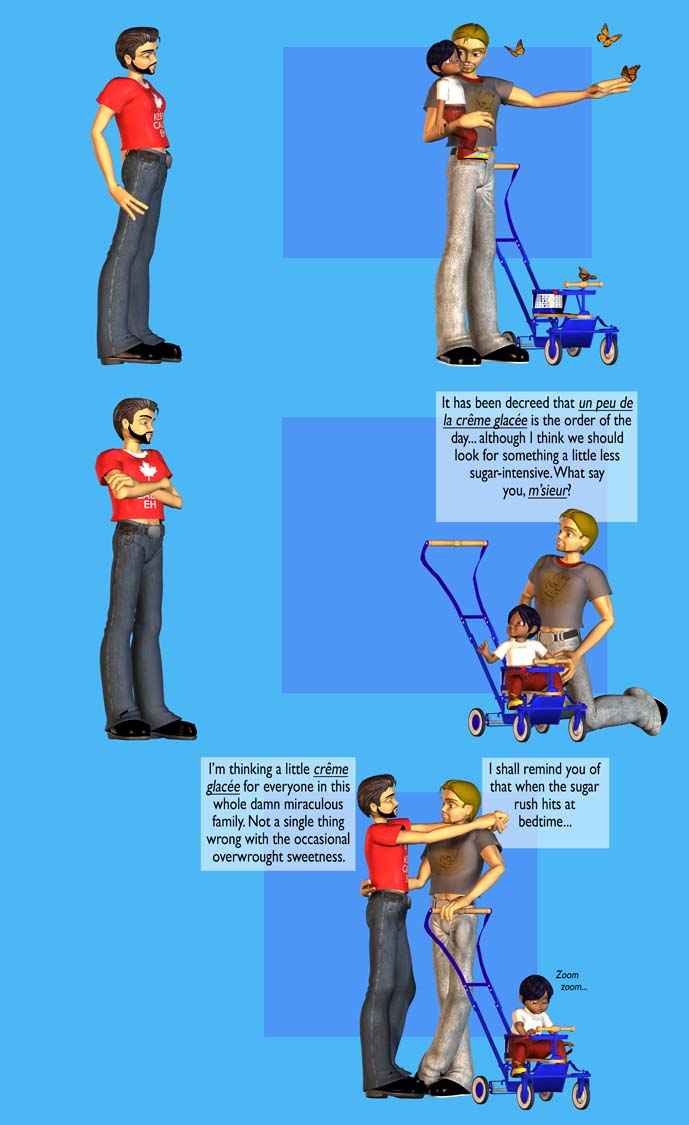 1. When Anna was given her first ice cream she LOVED it. We took her to a little place in East Greenbush that had some kiddie rides. She finished her cone and, as 3 years often do, vanished. We were just about to parentally freak out when I saw her at the pick-up window. A slightly older man had just been handed his cone. As he turned to leave, Anna pulled on this trouser leg. Startled, he looked down. Anna looked up and said, “Lick?”