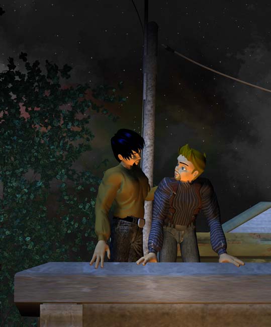 I looked back at the window into the apartment. “Okay, look, I dont want to seem rude to our… host, but I’m not so sure I want to even think about going back in there.”