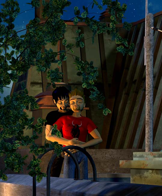 I found Doc out on the roof, staring up at the night sky. “Hey, hot man.”