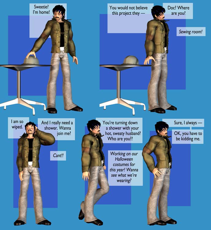 Between now and a week from today, let’s hear you idea for the boys’ attire for Halloween. I’ll pick one at random and work it up as part of a special Halloween event I’m doing with Webcomics Underdogs, another at PanHistoria, and a series of strips here about how it came to be.