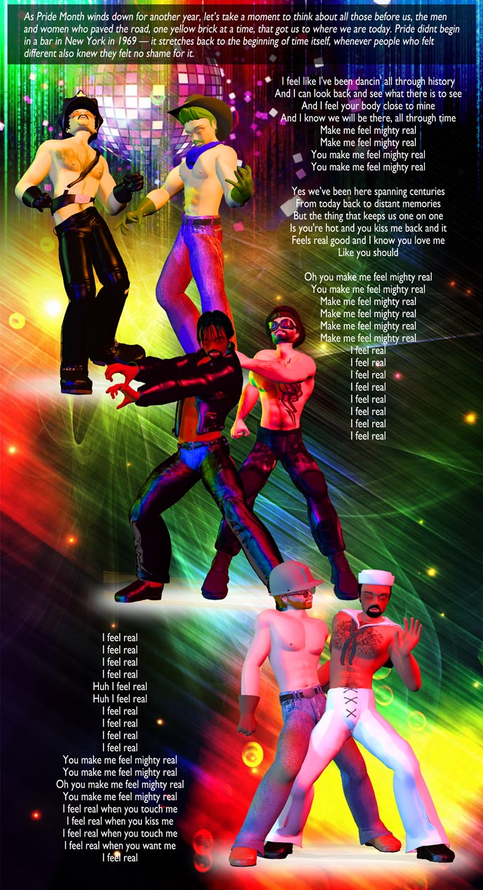 I’ve shamelessly appropriated song lyrics here, rewriting some, blatantly just copying others because there didnt seem any reason to change them — I mean, what can one do to “Night and Day”, right? All of them are more or less genuine — “Masculine Women Feminine Men” was a major hit back in the day, as was “He’s My Secret Passion” (which is perhaps the most opaque of the coded songs ever written). But it’s been a fun series to put together to celebrate a bit of our heritage that we sometimes gloss over because we never think what things like this meant to the LGBTQ folk of the time.