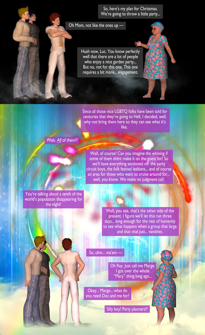I like this. I’ve seen some variations on this theme, and I like how this one is handling it. IMHO, Heaven and Hell look different to different people. There are always going to be people who believe someone else doesn’t belong in heaven, but that’s not our decision to make.