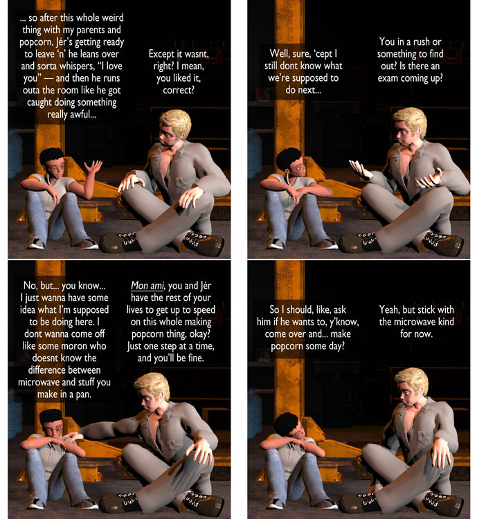 Well, this ran longer than I planned (as usual) and there’s a couple of things that’re going to have to be addressed in later storylines, like Algie’s casually snobby racism… but we’ll get back to those when the boys go back to Scotland for the next term. In the interim, we’re going to be wrapping up the Big Storyline on the main page and then head into some Pride stuff. Hope you’re enjoying the ride.