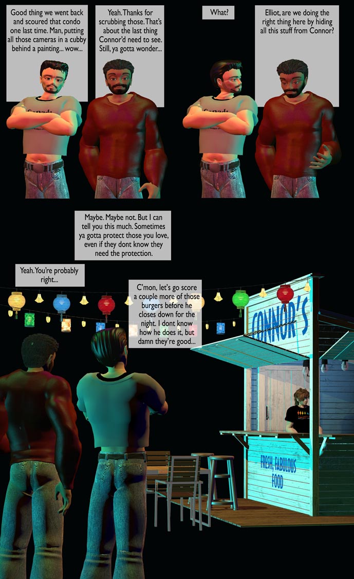 Okay, a break tomorrow to put up something to celebrate Pride, then on Monday we’re gonna turn attention to another couple we havent really seen in a while: Eddie and André. Unlike this storyline (which went a lot darker than I originally planned), we’re gonna have some fun with these two uber-rich A-gays. See you then.