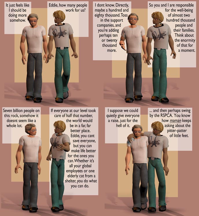 We’re going to leave this for a bit, but I’m sure we’ll come back to it later. Eddie’s global influence has made him a target a couple of times before, and with things as they are, there’s no reason to think he and André are going to ever fully escape it. But for the moment, let’s let them enjoy what they can do to make the world a slightly better place — and perhaps think about what we can do as well.
